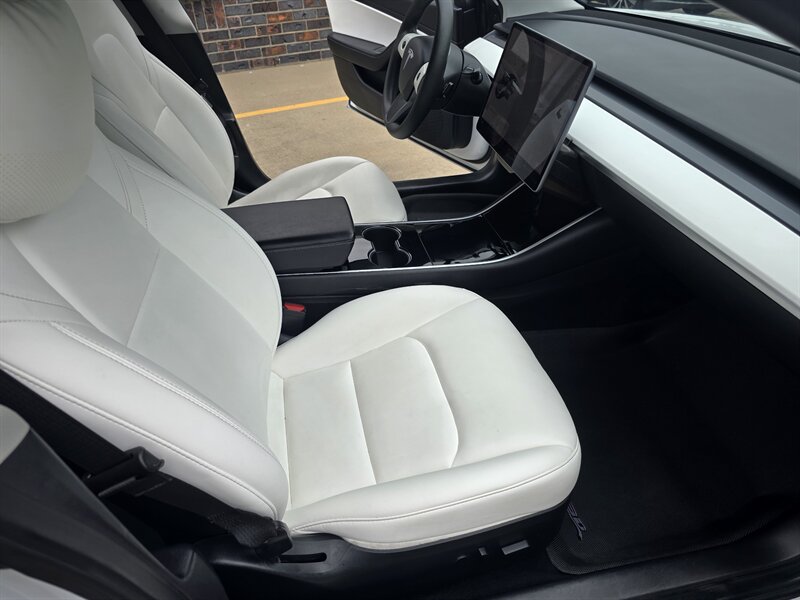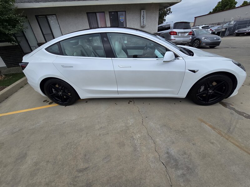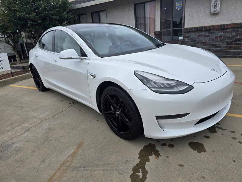 2020 Tesla Model 3 Standard Range Plus — Pearl White Multi-Coat exterior with Black & White interior. Rear-wheel electric motor rated at 283 hp and 317 ft-lbs delivers brisk, quiet performance with regenerative braking and a single-speed drive unit. This example includes optional Full Self-Driving Capability (Navigate on Autopilot, Auto Lane Change, Autopark, Summon, Traffic Light & Stop Sign Control), Black & White premium interior, and 19-inch Sport Wheels. Factory equipment includes a 15-inch touchscreen with navigation, Bluetooth, Wi-Fi and over-the-air updates; standard Autopilot driver-assist (traffic-aware cruise control and lane-keeping); premium audio; dual-zone automatic climate control; heated front seats; panoramic glass roof; LED lighting; rearview camera with parking sensors; and keyless entry with mobile app integration. Vehicle is in excellent overall condition.